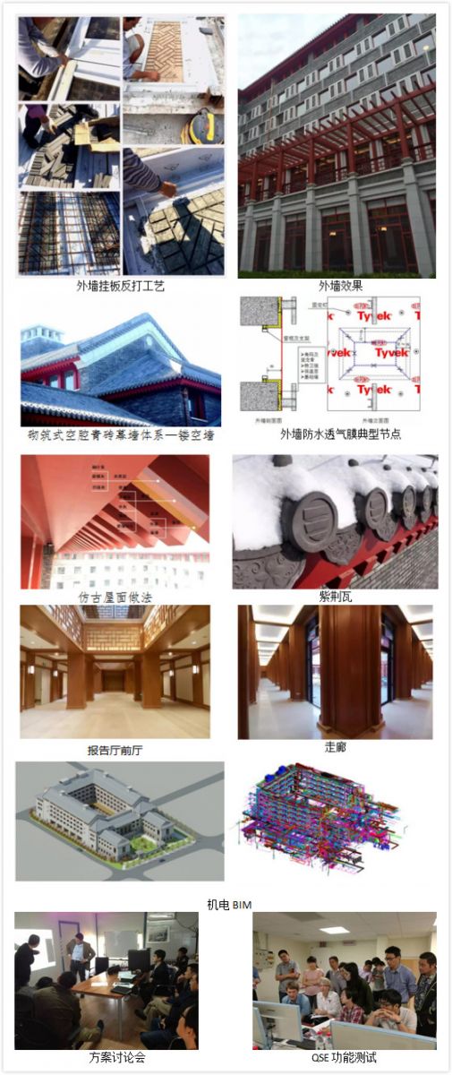 蘇世民書院這座國際級書院的建設可謂是極致的精品,對施工技術有著嚴格的要求。其中采用的新工藝、新作法以及極高的質量標準,對監理工作提出了很大挑戰。書院外墻采用掛板反打施工工藝、砌筑式空腔青磚幕墻體系—鏤空墻設計、仿古屋面、室內設計采用了大量實木做法以及機電系統要達到國際先進的運行標準等都是監理工作中的難點。監理單位通過多次對廠家、產地等的考察、參與施工方案的討論及審核、樣板審核以及參與機電BIM深化的工作,圓滿的完成了。