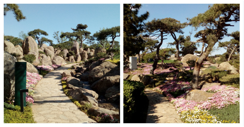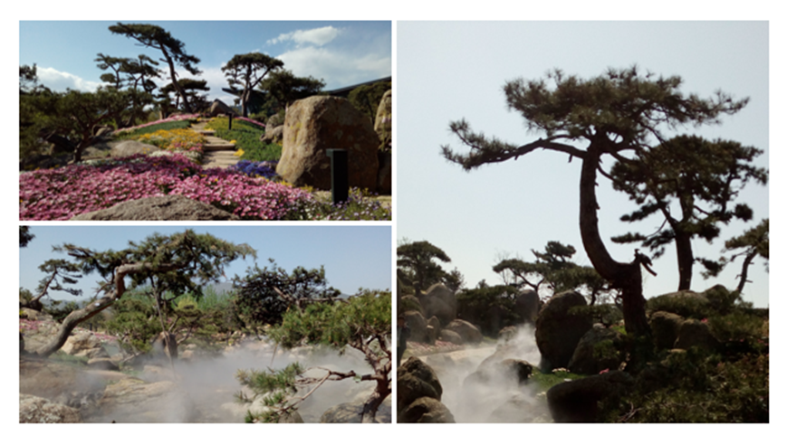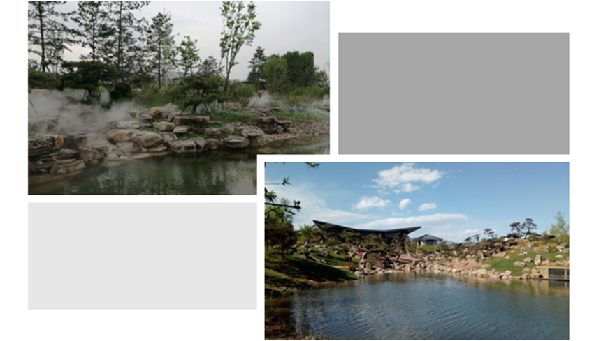 在會議中心南北兩側,是根據景觀特色修筑的冬夏二園。“冬園內有藝術展覽館、觀景亭等北方建筑。夏園內設有景觀塔、疊水疊石等南方景致,以及一片千余平方米的多功能草坪。
