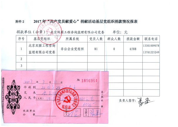 今年是中國共產黨成立96周年,“七一”期間,西城區委組織部、區委宣傳部、區慈善協會繼續在全區范圍內組織開展“共產黨員獻愛心”捐獻活動。我公司黨委參加了月壇街道組織的捐獻活動。