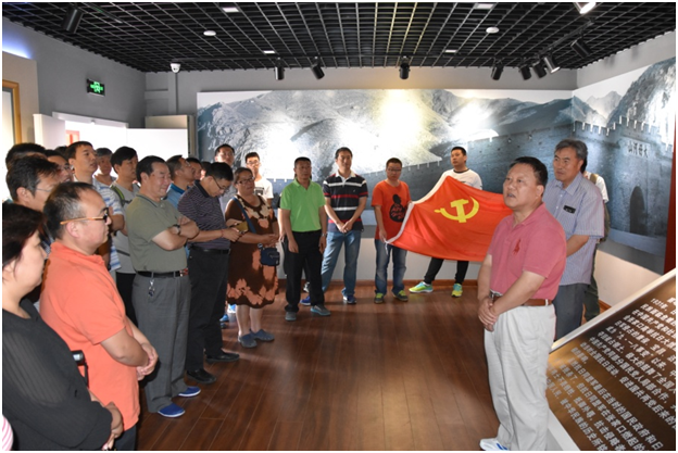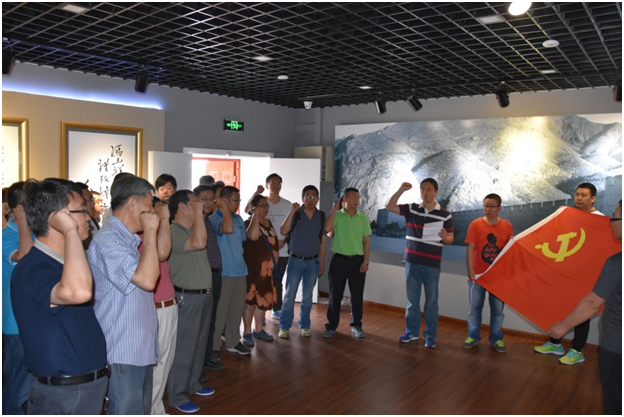 在黨旗和在長城為背景的展墻下,由黨委委員劉永忠帶領黨員重溫入黨誓詞。大家高舉握緊拳頭的右手,宣讀了遵守黨的章程,履行黨員義務,執行黨的決定,嚴守黨的紀律,堅守誓言。