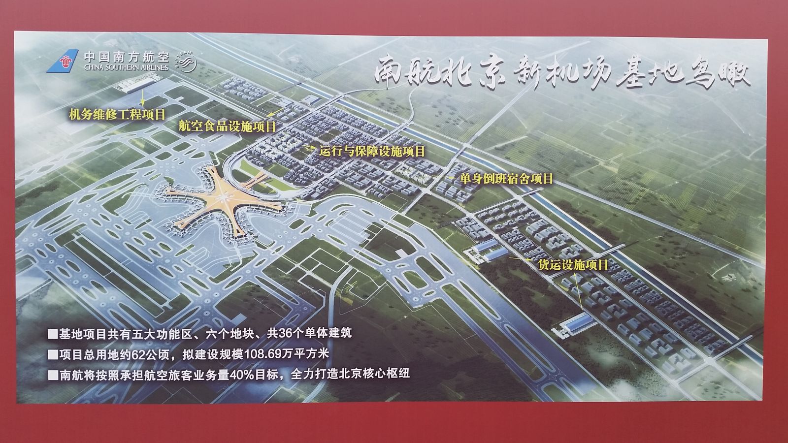 北京新機場是首都的重大標志性工程,作為北京新機場的主基地航空公司的南航目前正參與北京新機場的建設工作,此次奠基儀式標志著南航在北京新機場建設進入新階段。該基地項目建設內容包括運行及保障用房項目、單身倒班宿舍項目、航空食品區項目、機務維修區項目、貨運區項目五大功能區。南航將立足北京新機場基地,全力打造北京核心樞紐,到2025年,預計投放250架飛機,建設覆蓋國際國內的航線網絡。