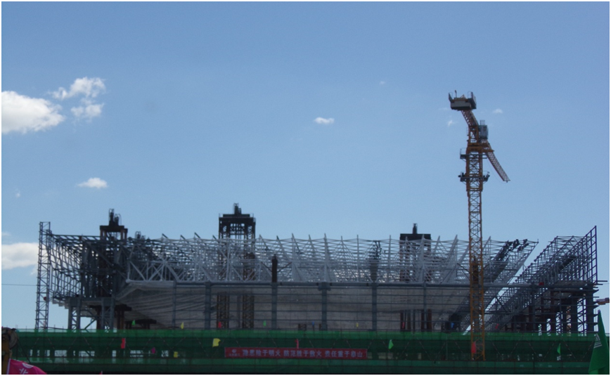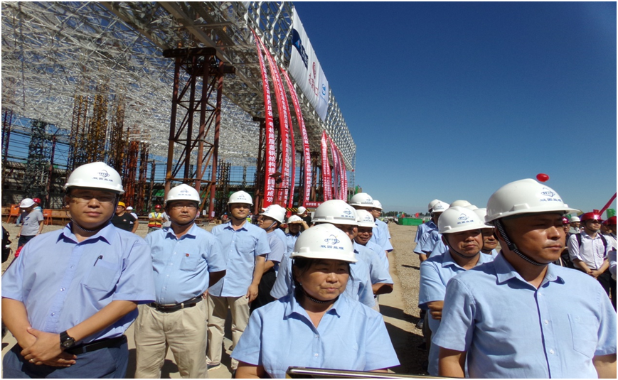 公司總工在儀式現(xiàn)場指導1號機庫屋蓋后續(xù)嵌補桿件質量控制工作及質量控制重點。