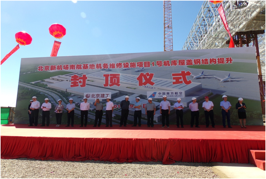 2018年9月3日上午10時許,北京新機場南航基地機務維修設施項目1號機庫屋蓋鋼結構提升封頂儀式正式開始,北京雙圓咨詢監(jiān)理有限公司方陣著裝統(tǒng)一,整齊有序,體現(xiàn)出雙圓精神。
