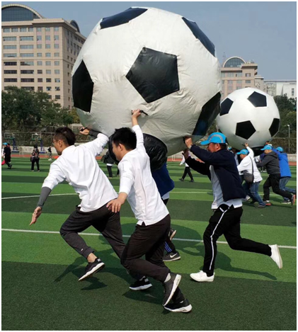 而在整場運動會中,最引人注目的還是集體趣味項目。瘋狂毛毛蟲、動感五環(huán)、超級運球跑、眾星捧月等團體項目的精彩進行,引得全場觀眾呼聲連連。