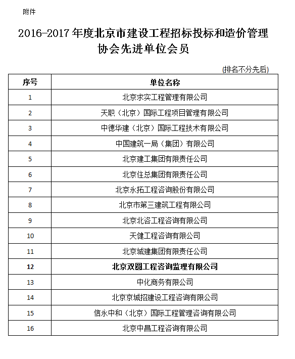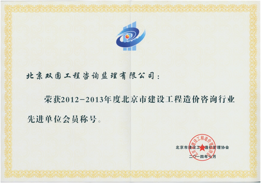 這是我公司繼“2014-2015年度北京市建設工程招標投標和造價管理協會先進單位會員”、“2013-2014年度北京市建設工程招標投標和造價管理協會先進單位會員”后,連續三年榮獲此項榮譽稱號。