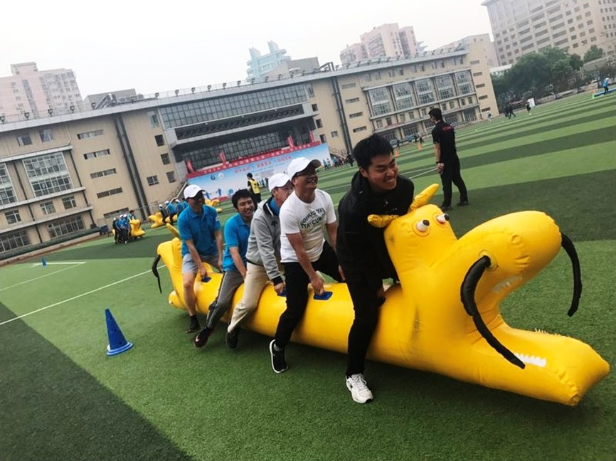 而在整場運(yùn)動(dòng)會(huì)中,最引人注目的還是集體趣味項(xiàng)目。八仙過海、車輪滾滾、十拿九穩(wěn)、旱地龍舟等團(tuán)體項(xiàng)目的精彩進(jìn)行,引得全場觀眾呼聲連連。集體趣味項(xiàng)目不但考驗(yàn)運(yùn)動(dòng)員們團(tuán)隊(duì)配合的默契性,最主要的還是讓大家能在運(yùn)動(dòng)中享受快樂。