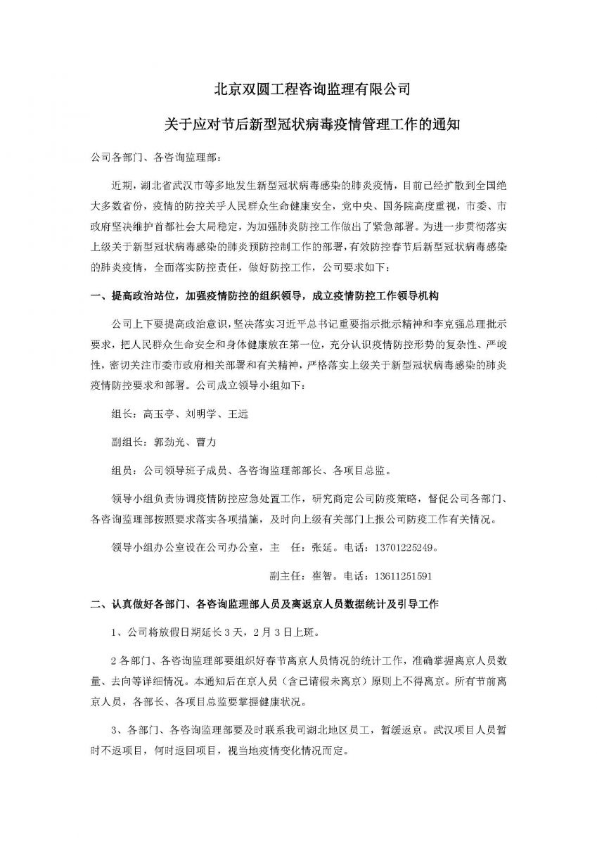 關于應對節后新型冠狀病毒疫情管理工作的通知