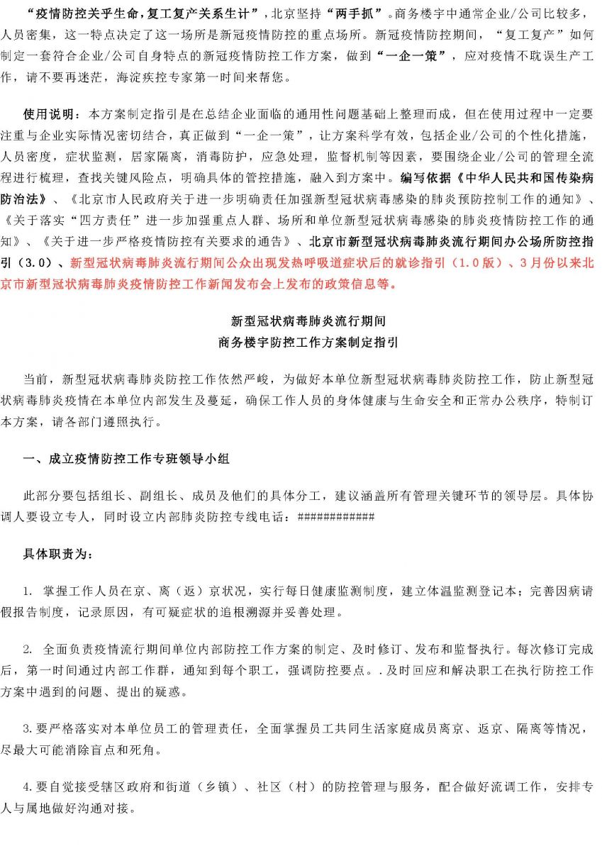 新型冠狀病毒肺炎流行期間商務樓宇防控工作方案制定指引