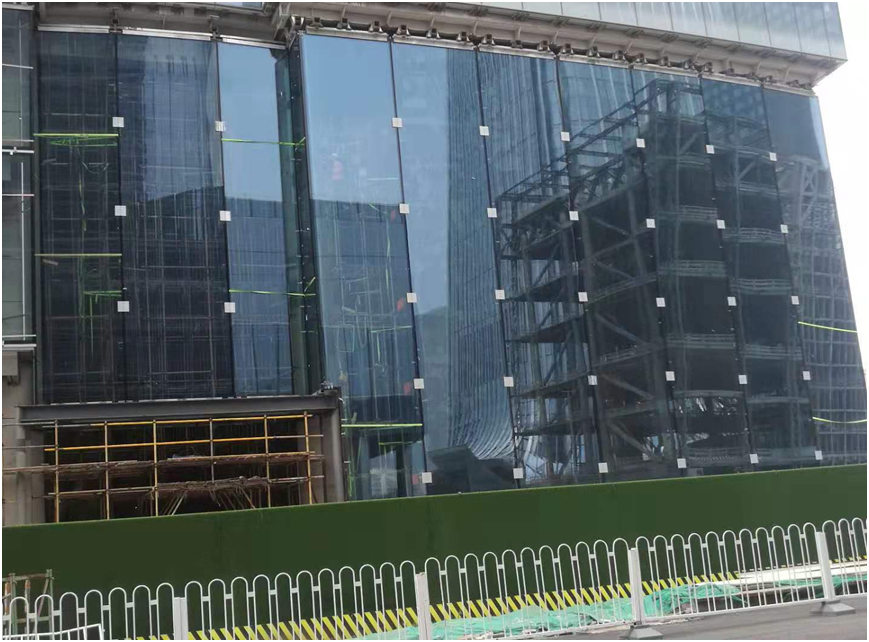 項目施工過程中,項目部多次配合建設單位接待外部客戶參觀考察;公司總工辦及安全組領導還多次親臨現場進行安裝過程指導。施工單位管理中心還牽頭組織編制了《落地式超大玻璃幕墻工程質量驗收企業標準》,填補了行業空白,將為后續類似工程的實施提供規范指引。