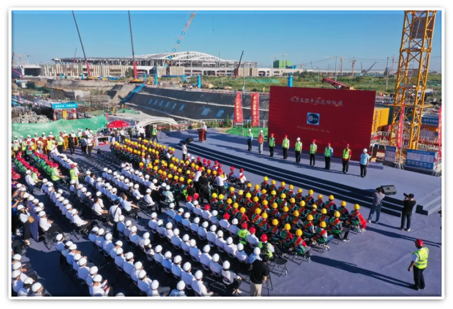 2020年9月10日上午,雄安新區(qū)“項目一線百日行”總結大會暨“十月突破”啟動儀式在高鐵站片區(qū)雄安站道路管廊(一期)一標建設現場舉行。