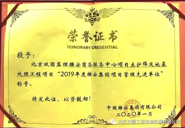 2019年度雄安集團(tuán)項(xiàng)目管理先進(jìn)單位
