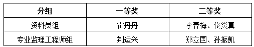 本次競賽實際參賽人員共計31人,分為資料員組及專業(yè)監(jiān)理工程師組。根據(jù)現(xiàn)場參賽人員試卷作答情況,閱卷人打分評選出每組各一等獎1名、二等獎2名,第九監(jiān)理部對獲獎同志予以現(xiàn)金獎勵。